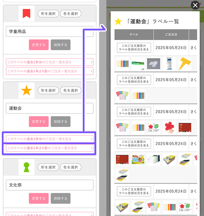 ご注文履歴に付与するラベル一覧をご確認いただけます。