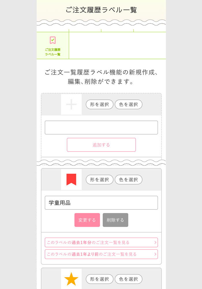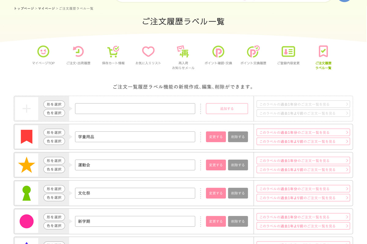 ご注文履歴に新しく追加するラベルを登録することができます。