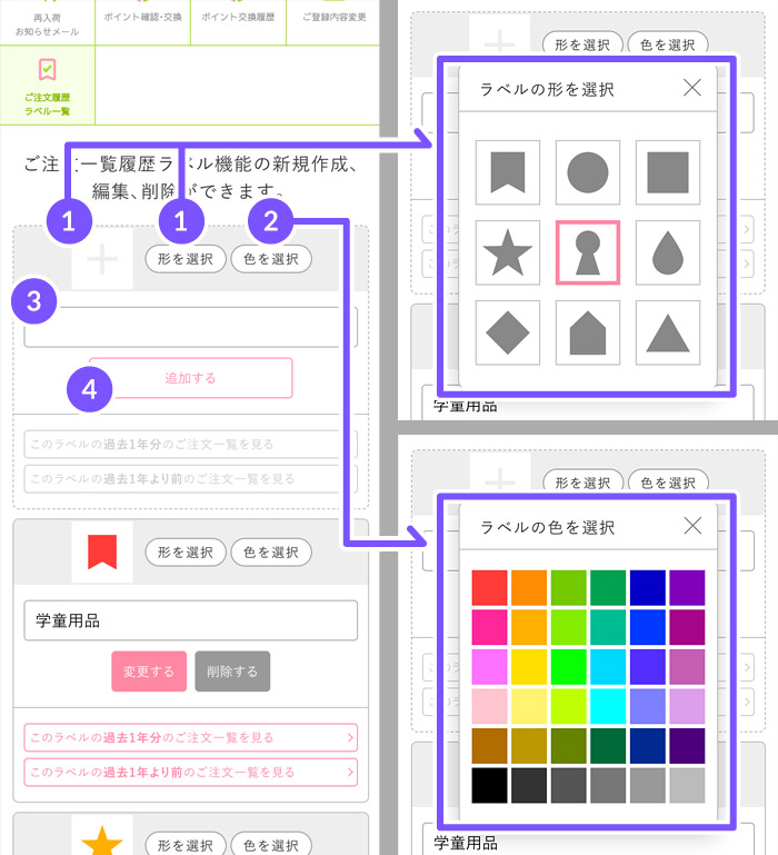 ご注文履歴に付与するラベルを新規作成または編集・削除することができます。