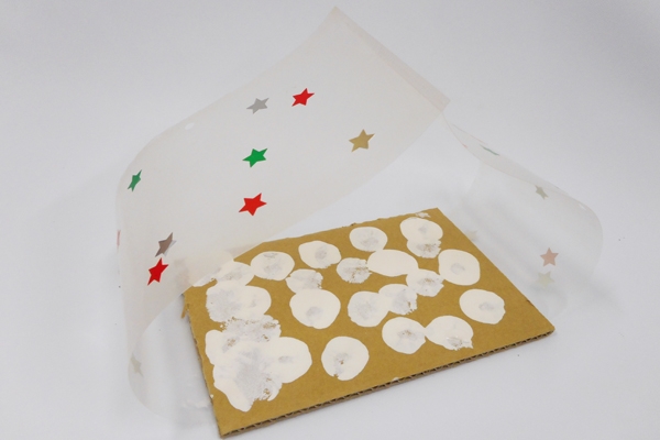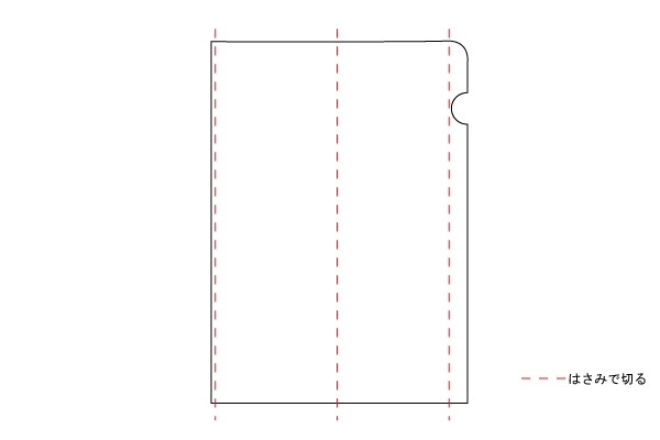 クリア素材の折り目を上にして下側を広げ、セロハンテープでダンボールと貼り合わせる。