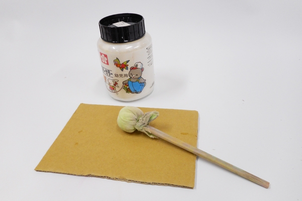 タンポを使ってポスターカラーでスタンプ遊びをする。