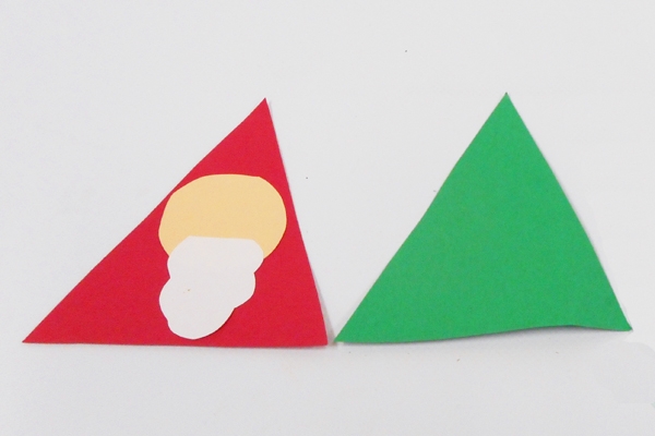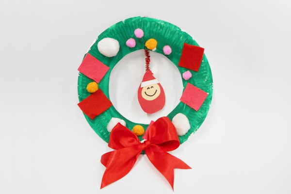 サンタクロースの顔をサインペンで描いてシールを貼って飾る。
