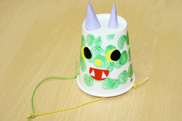 紙コップの底の部分に木工用接着剤でつのを貼りつける。