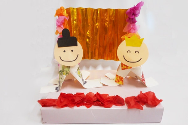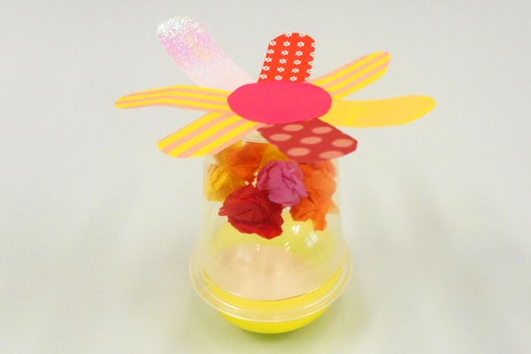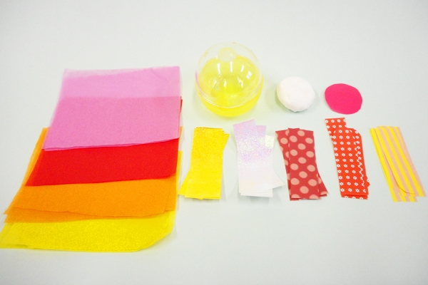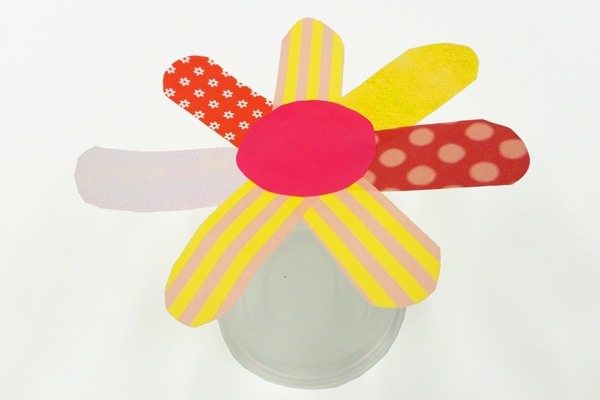 両面テープの剥離紙をはがして、好きな花びらの色や模様を選んで花びらのように貼る。