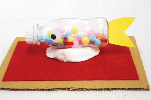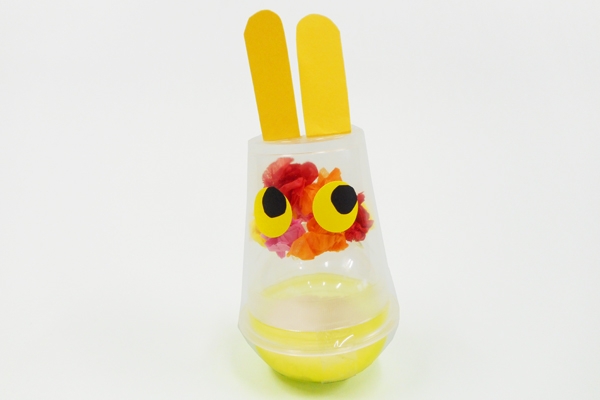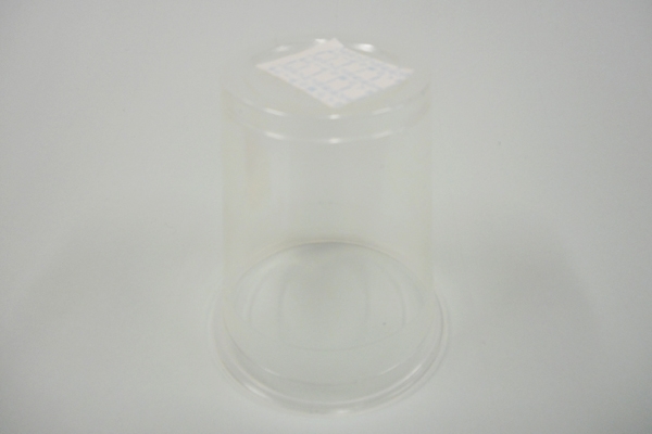 カプセルの中に油粘土を入れ、クリアカップをかぶせてセロハンテープで接着し、固定する。