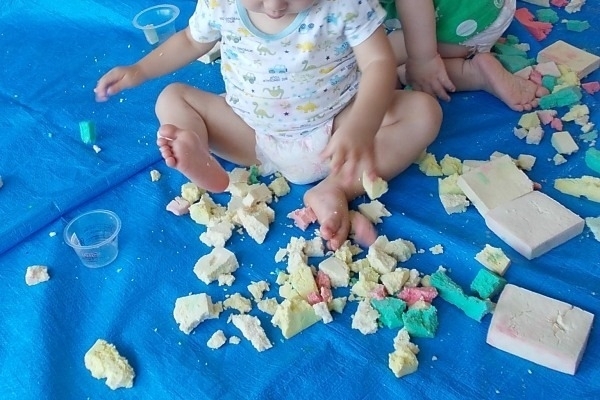 (いっぱいちぎっちゃうぞ!)切れることに気づき、手でちぎることに夢中な子もいる。