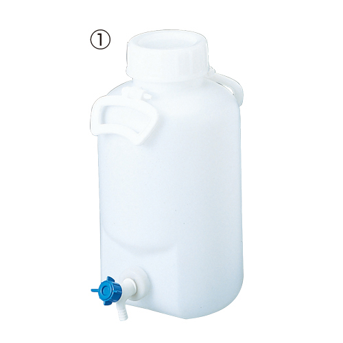 ●サイズ/口内径×胴径×高さ:(1)φ96×φ217×394㎜(2)φ96×φ304×420㎜、コック先端部:内径:φ8.5㎜、外径:φ12㎜●材質/本体:PE(ポリエチレン)、コック:PP(ポリプロピレン)、Oリングパッキン・シールパッキング:EPDM(エチレンプロピレンゴム)