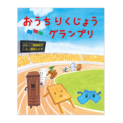 陸上競技で競うのは、洗濯機、冷蔵庫、机、それからお父さんのパンツ!勝つのはだれ?とワクワクする、ナンセンス絵本。
