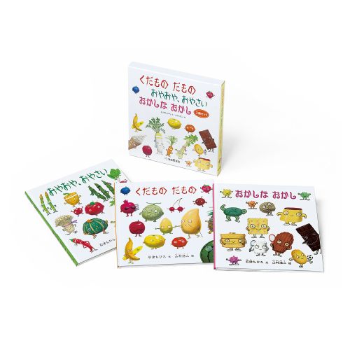 果物や、野菜、お菓子が活躍するユーモラスな絵と、思わず口ずさみたくなることば遊びが楽しい!