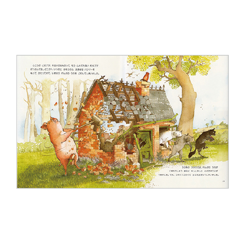 「3びきのこぶた」をすてきにひねった愉快なお話!幼稚園や小学校で劇として楽しまれる作品。