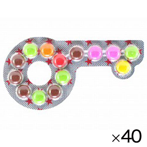 10ミリ程度のカラフルマーブルチョコ14コをカギの形をしたシートに付いた駄菓子です。