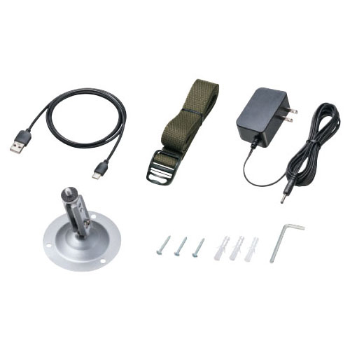 ●付属品/ACアダプタ、固定用ベルト約180㎝、TypeC-AコネクタUSBケーブル(PC接続用)、壁取り付け部品セット(固定用ブラケット×1、タッピングネジ×3、コンクリートアンカー×3、六角レンチ×1)