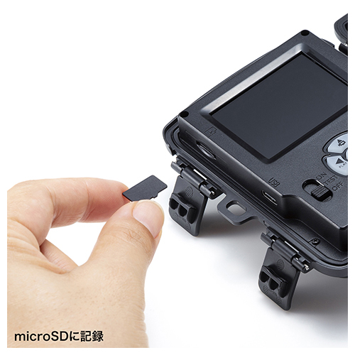 連続録画もできる赤外線センサー内蔵のトレイルカメラ。電池だけで動作するので設置が簡単! AC 給電にも対応。