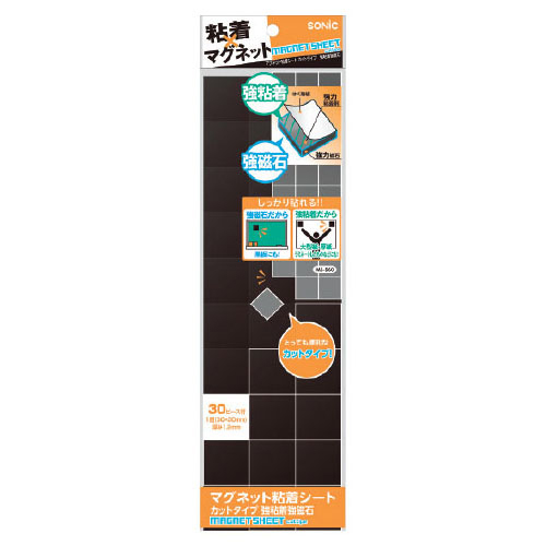 【ソニック】 粘着剤付マグネットシートカット30片 強力
