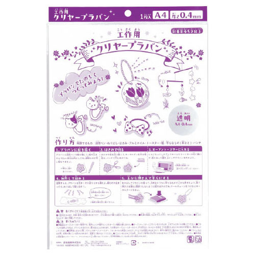 ●サイズ/210×297㎜●厚さ/約0.4㎜●材質/ポリスチレン●軟化温度/80℃前後●ちぢむ温度/130℃前後(約1/4に縮小)