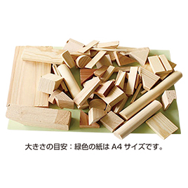 のこぎりを使わずに作品が作れるよう、主に小さい木の造形パーツを集めました。