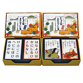 ●内容/読札・取札×各100●サイズ/パッケージ:W116×D85×H70㎜、札:51.5×75.5㎜●重量/460g●材質/板紙