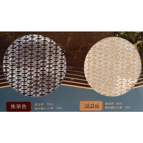 ●サイズ/900×1800×0.9㎜●重量/約750g●材質/ポリエステル、ポリ塩化ビニール●遮光率/こげ茶70%、亜麻色65%●紫外線カット率/こげ茶74%、亜麻色72%