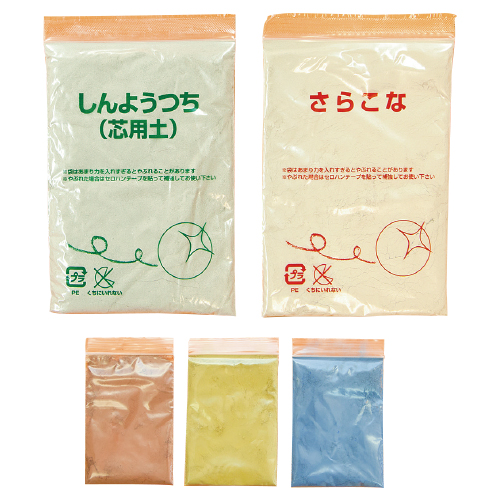 ●材質/芯用土:天然100%鉱物粉末、さらこな:天然100%粘土粉末、色こな:天然100%粘土粉末・無機顔料