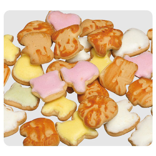 ●原材料/小麦粉、砂糖、馬鈴薯澱粉、ショートニング(パーム油、なたね油、ヤシ油)、ぶどう糖、乳等を主原料とする食品、食塩、ゼラチン/膨張剤、着色料(パプリカ色素、カラメル、クチナシ、ビートレッド)、増粘剤(加工でん粉)、香料、(原材料の一部に小麦・乳成分・ゼラチンを含む)