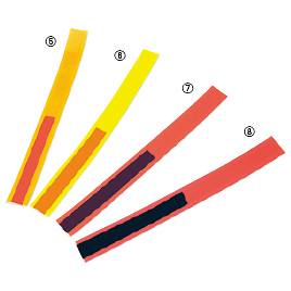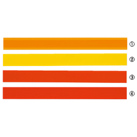 ●可逆性・精度±2℃・シールタイプ●サイズ/20×200㎜●変色温度/(1)(5)40℃(赤味黄⇔赤味橙)(2)(6)50℃(黄⇔黄味橙)(3)(7)60℃(明るい黄味赤⇔暗い茶紫)(4)(8)70℃(赤⇔暗い茶紫)