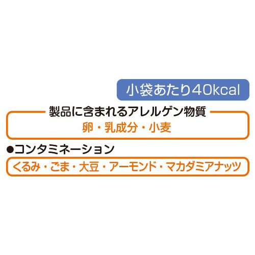 ●原材料/小麦粉(小麦(国産))、マーガリン(乳成分・大豆を含む)、砂糖、液全卵、パンプキンパウダー、DHA含有精製魚油含有加工食品、食塩/香料、酸味料、カロチン色素
