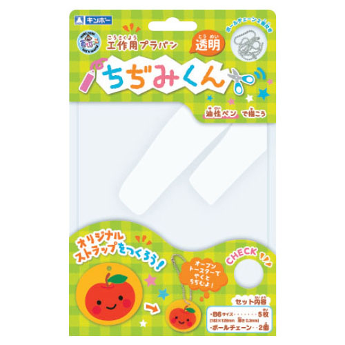 ●サイズ/128×182㎜(B6)●厚さ/約0.3㎜●材質/ポリスチレン、鉄●軟化温度/80℃前後●ちぢむ温度/130℃前後(約1/4に縮小)●付属品/ボールチェーン2個