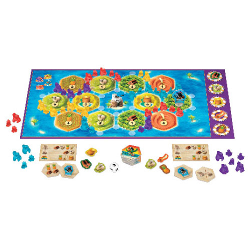 ●内容/(1)両面ボード×1、サイコロ×1、海賊キャンプ×28、船×28、スタンド付クロウ船長コマ×1、ココタイル×16、しげんチップ×90、コスト表×4(2)地形タイル×19、海フレーム×6、数字チップ×19、コマ(盗賊×1、街道×60、開拓地×20、都市×16)、ダイス×2、資源カード×95、発展カード×25、建設コスト表×4、ボーナスボード×2、カードホルダー×2、コマ箱×4