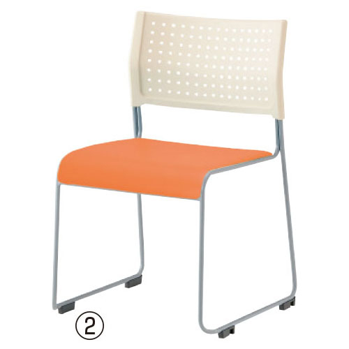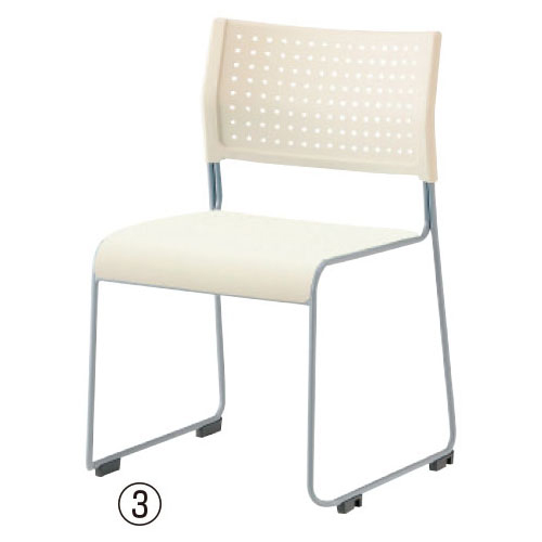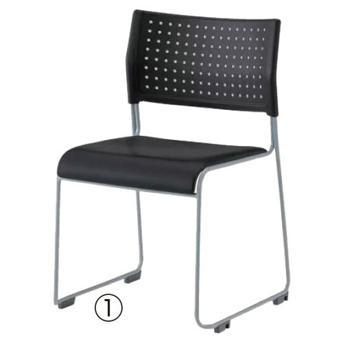 ●サイズ/本体:W490×D525×H750㎜、座面高さ:430㎜●重量/3.8㎏(1脚)●材質/背:PP、座:PP芯材、クッション:ウレタンフォーム、上張り:ビニールレザー、脚:スチール●付属品/連結プラパート