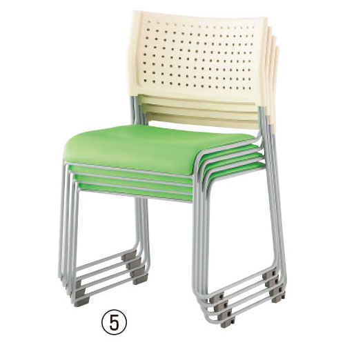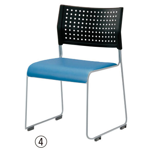背は樹脂・座はビニールレザーのシンプルなスタッキングチェア。