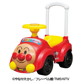 シンプルな足けり乗用のアンパンマンカーです。座面を開けると小物が入れられます。