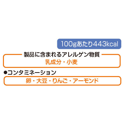 ●原材料/小麦粉(小麦(国産))、植物油脂(パーム油)、砂糖(てん菜(国産))、小麦胚芽、ホエイパウダー(乳成分を含む)、食塩/膨張剤(重炭酸アンモニウム、重曹)