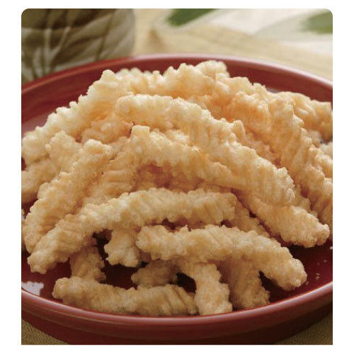 国産小麦由来の小麦粉を使用した生地を、植物油でカラッと揚げました。ユニークな形と軽い口当たりが特徴です。