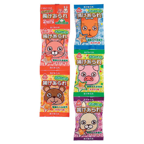 国産もち米が主原料の生地に、国産大豆から作ったおからを加えてカラッと揚げました。あまから味がじわっとおいしい、揚げあられ。