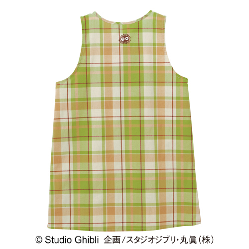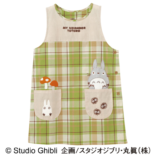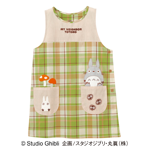 トトロのファーアップリケが気持ちいい。チェックの切替デザインのエプロン。
