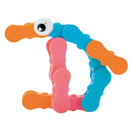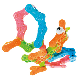 はさんで、まわして、アイデアがいっぱいうかびます!ひとつひとつのパーツをはさんで組みたてられるだけでなく、結合部分がカチカチと音をたてて回転します。