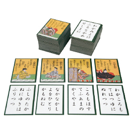 ●内容/読札・取札×各100、読本(全首・全読人解説書)×1●サイズ/パッケージ:W135×D57×H168㎜、札:53×74㎜●重量/660g●材質/紙(百人一首専用紙)