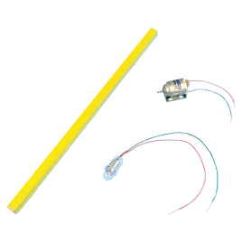 ●内容/豆電球(1.5V、0.3A)、リード線付き豆電球ソケット、マブチモーターセット、軸こすり棒