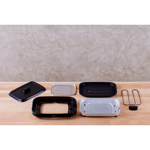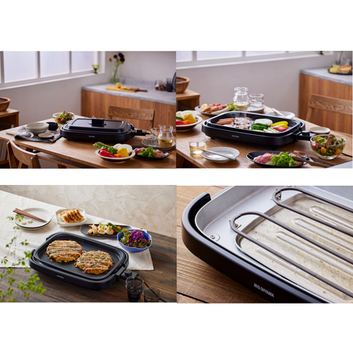 ●サイズ/使用時(プレート1枚装着):約48.4×34.1×8㎝、収納時:約48.4×34.1×14.7㎝●消費電力/1300W●電源コード長さ/約1.8m●プレート温度/保温~ 250℃