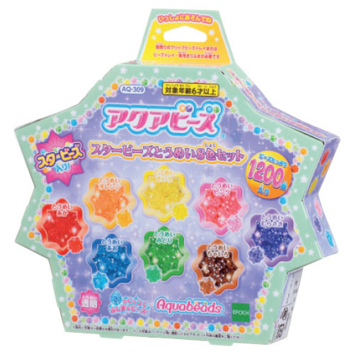 ●内容/スタービーズ 8色(約1200個)、デザインシート●サイズ/パッケージ:30×180×180㎜●重量/146g●材質/PVA、紙