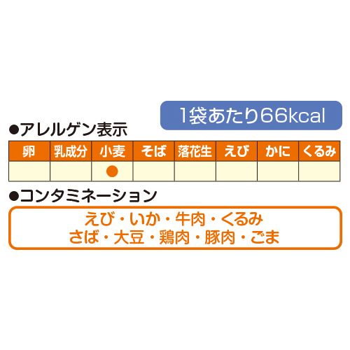 ●原材料/うるち米(国産)、植物油脂(米油、パーム油)、醤油(大豆・小麦を含む)、砂糖、海苔、かつお粉末