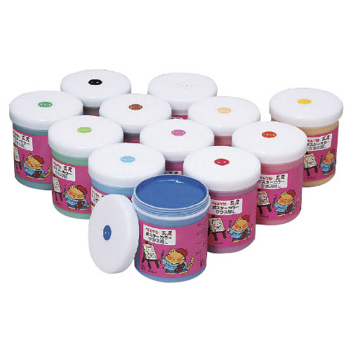 クラス用大容量で、広口サイズのボトルが使いやすい絵の具。