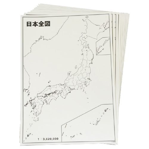 グループ学習に便利なA2サイズ、繰り返し使える白地図シート10枚組です。