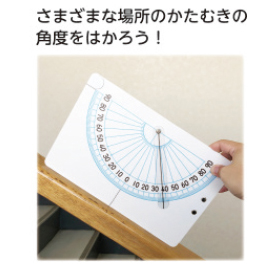 ●サイズ/縦195×横295×厚さ1.5㎜●重量/1.4㎏●材質/ペット樹脂●セット内容/かたむき分度器=10セット、DVD(PowerPoint)1枚