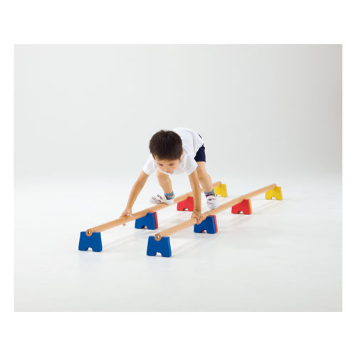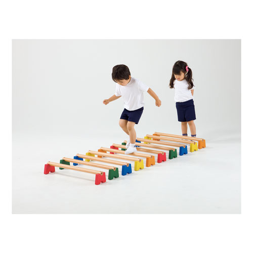 積み重ねてハードル、縦に連結して平均台、横に並べて低雲梯など、様々なアスレチック遊びが可能です。