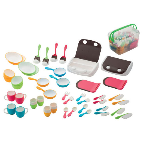 ●サイズ例/おわん:φ8.7×5㎝、IHクッキングヒーター:23.5×17×4.6㎝●重量/3.5㎏(収納ケース含む)●材質/ままごと各種:エラストマー、IHクッキングヒーター:ポリエチレン、収納ケース:ポリプロピレン
