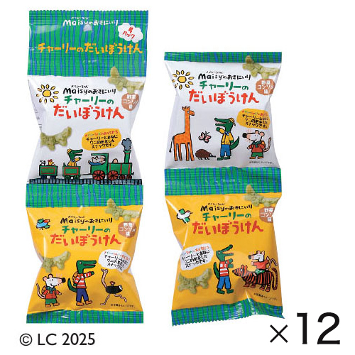 メイシーちゃんのお友達「チャーリー」と同じワニの形をした、サクッとした食感の野菜コンソメ味のスナックです。国内産うるち米、国内産小松菜のパウダー使用。