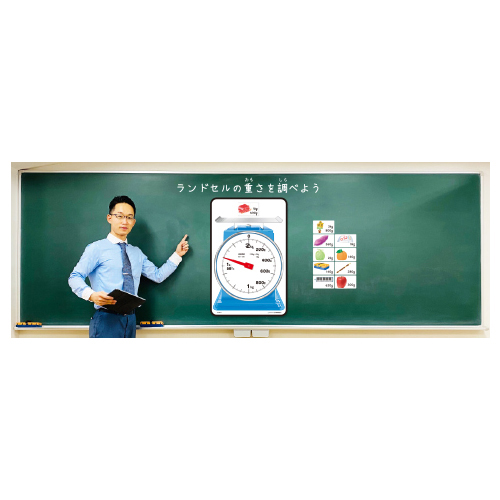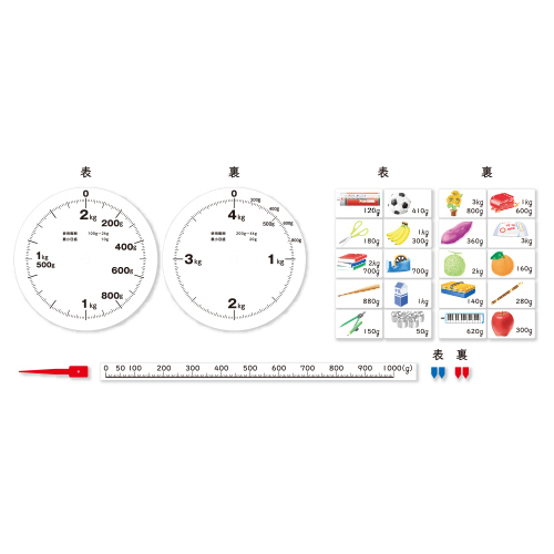 ●内容/はかり説明ボード1枚、重さイラストマグネット10枚(両面印刷20種)、2・4㎏目盛りマグネット(両面印刷)1枚、数直線(1000g)1枚、矢印2個、磁石付針1個●サイズ/910×600×3㎜●重量/2.1kg●材質/スチール、アルミ複合板、ゴム、磁石、ウレタン