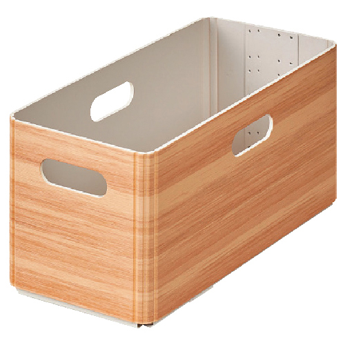 積み重ねることができる木目調の組み立て式収納ボックス。軽くて丈夫な発泡PP素材で水に強い!