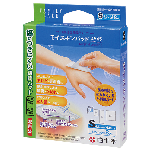 滲出液を適度に吸収し、創傷に固着しにくい外科用パッドです。